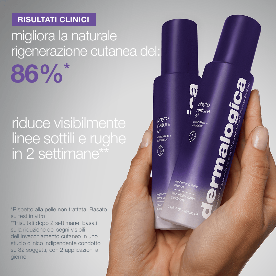 L'innovativo prodotto preparatorio con esosomi: questo prodotto quotidiano, setoso e leggero, combina enzimi ed esosomi in una formula rivoluzionaria che supporta la rigenerazione naturale della pelle dall'interno ogni giorno.